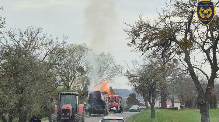 Hasiči likvidovali požár vleku se senem