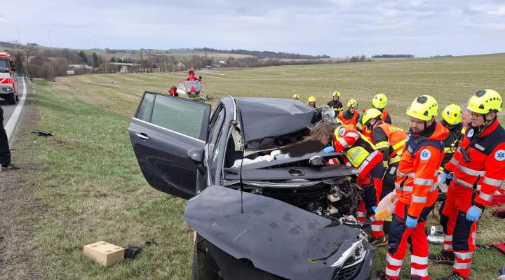 U obce Nedakonice se v sobotu střetla dvě osobní auta, hasiči vyprošťovali dvě osoby