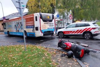 Dopravní nehoda autobusu a motocyklu v Pardubicích