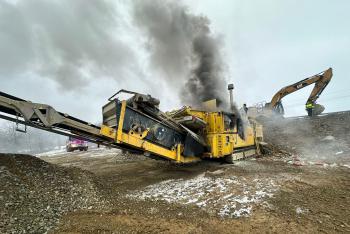 Na stavbě Pražského okruhu u obce Kolovraty hořel velký zemní stroj