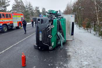 Dálnici D55 u Napajedel uzavřela v pondělí večer nehoda osobáku a náklaďáku