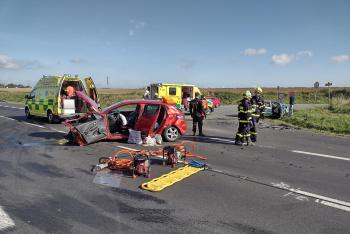 Střet dvou vozidel uzavřel ráno silnici II/611 u Hradce Králové