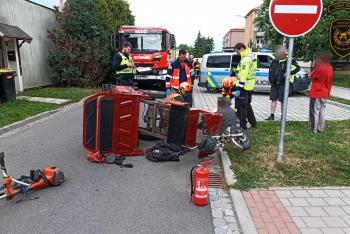 V Chropyni se převrátila trojkolka, řidič se zranil