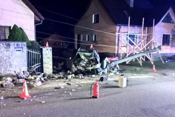 Ve Vsetíně narazilo auto do plotu a sloupu elektrického vedení