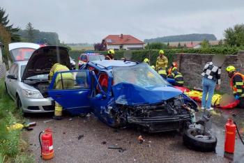 Při nehodě dvou aut v obci Chroustovice došlo ke zranění pěti osob