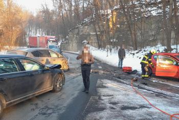 Po nehodě tří aut museli hasiči vyprostit řidičku pomocí hydrauliky