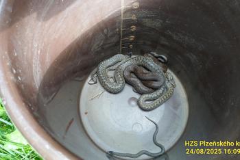 Hasiči stěhovali hadí rodinku od základů rodinného domu
