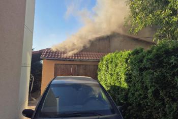 Při požáru pergoly a garáží byla zraněna jedna osoba