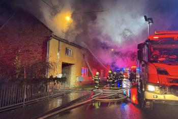 Hasiči zasahují u požáru rodinného domu v Seloutkách na Prostějovsku