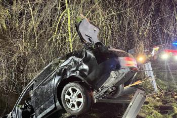 Při nehodě auto zůstalo na střeše