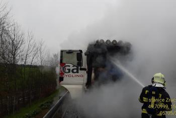 Náklaďák v plamenech, dálnice D1 trochu v problémech