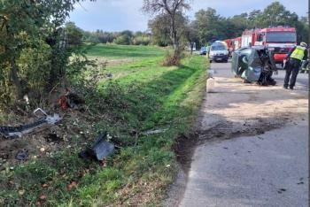 Po střetu dvou vozidel v Pozlovicích na Zlínsku skončilo menší na střeše