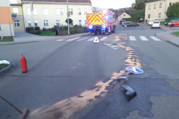 Auto v Lanškrouně narazilo do ostrůvku a ulomilo dvě dopravní značky