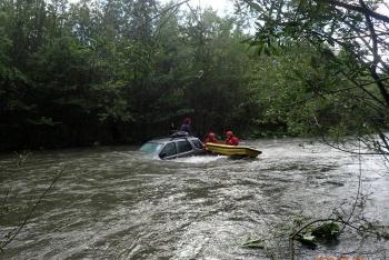 Z auta si málem udělal ponorku. Řidič vjel úmyslně do řeky (VIDEO)