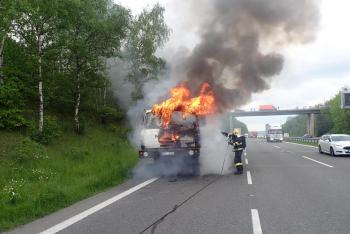 Děravý výfuk a problém. Na dálnici D5 u Rudné hořel za jízdy náklaďák