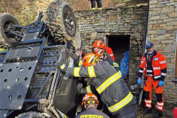 Muže zavalila čtyřkolka, hasiči museli použít k vyproštění hydrauliku