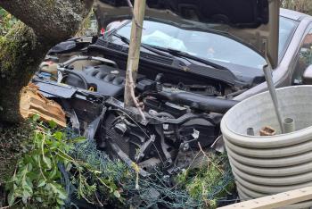 Řidič vozidla sjel ze silnice a s automobilem skončil v zahradě rodinného domu