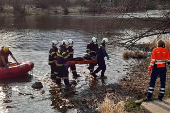 Zranil se a skončil ve člunu hasičů. Záchrana muže na jezu Soukeník
