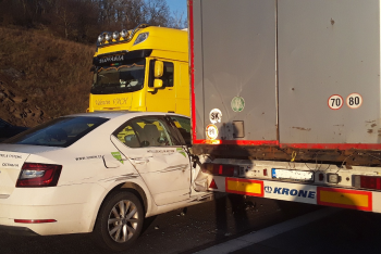 Omezený provoz na dálnici D1. Kolize dvou osobáků s kamionem