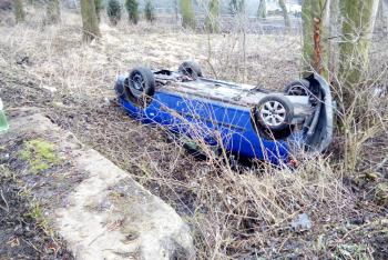 První jarní autokoupel. Havarovaný osobák skončil v potoce