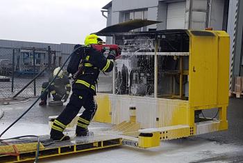 Požár baterií manipulátoru v Mnichově Hradišti způsobil škodu za miliony