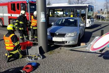 Osobák se srazil s trolejbusem v Pardubicích. Několik cestujících zraněno
