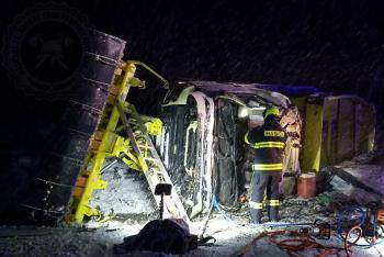 Požár náklaďáku na Jablonecku zaměstnal několik jednotek hasičů