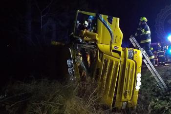 Uvězněný smolař za volantem náklaďáku. Převrátil ho na bok v lese