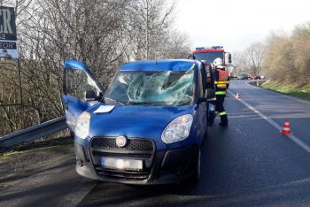 Nehoda u Mateřova. Mustang a Volkswagen v sobě a tři zraněné osoby