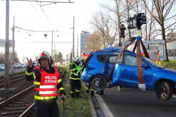 V Ostravě řidič osobáku vyměnil silnici za kolejiště. Neměl to dělat