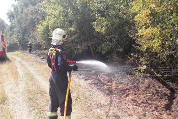 Hořící les pomáhal hasit i vrtulník, hasičskou techniku zradil terén