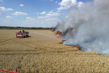 Závada na kombajnu zapálila pole s obilím. Požár pak likvidovalo 12 jednotek