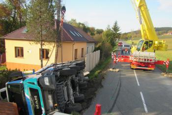 Plně naložený autodomíchávač zdemoloval plot u rodinného domu