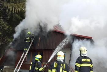 U sjezdovky na Kohútce hořela chata. Dva lidé oheň sami nezvládli
