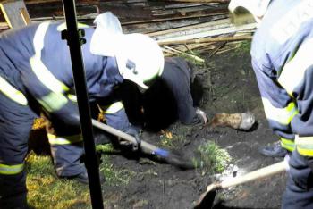 Kůň spadl do jímky a hasiči museli použít kromě dobrého slova i popruhy