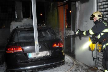 V garáži auto, to zcela zničil požár a odnesla to i fasáda domu v Praze
