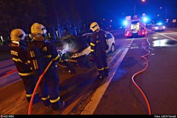 Požár auta v Ostravě - Hrabové se podařilo omezit hasicím přístrojem z autobusu