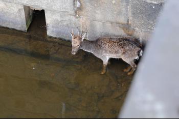 Pražští hasiči odchytili mladého daňka, uvízl ve Vltavě pod Mostem Legií
