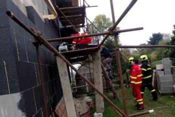 Nejspíš se udřel. Hasiči na Opavsku zachraňovali zesláblého dělníka z lešení