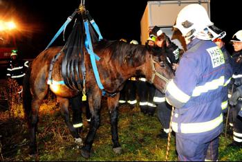 Lehla si a už nevstala. V pražském Lochkově hasiči zvedali kobylu