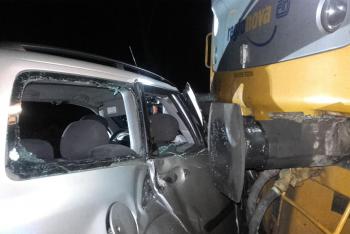 Střet s vlakem má vždy následky. Řidič osobáku skončil v nemocnici