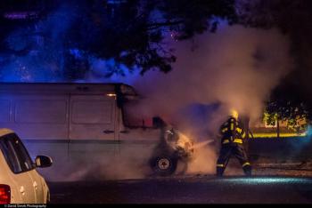 Požár dodávky v Brandýse nad Labem hasila i nová cisterna, pomohli i "dobráci"