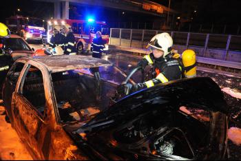 Na pražském Žižkově hasiči likvidovali požár dvou osobních vozidel