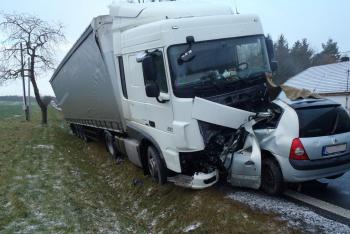 Tragický začátek týdne. Řidič osobáku zemřel po čelním střetu s kamionem