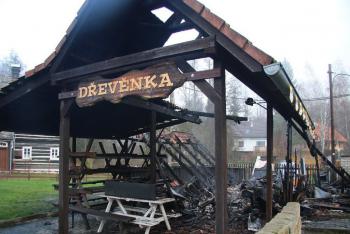 U chaty Dřevěnky ve Sloupu v Čechách si už párek a pivo nedáte. Shořela.