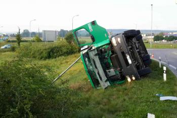 Řidič popelářského vozu "šněroval" zatáčku tak rychle, až vůz převrátil