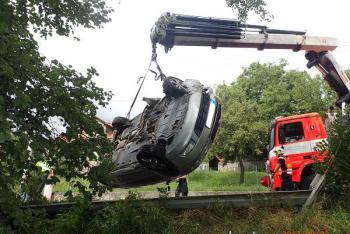 Potok si řidička asi spletla s myčkou. Hasiči museli auto vytáhnout