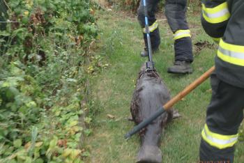 Příroda zaměstnávala hasiče. Lovili bobra v bazénu, pomohli čápovi
