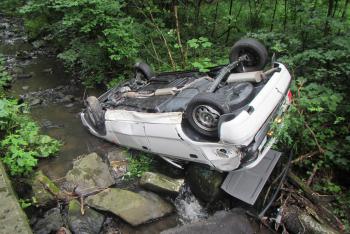 Na co řidič zrovna myslel? Ukončil svou jízdu v potoce, zůstal nezraněn