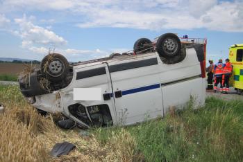 Dodávka zůstala ležet mimo komunikaci na střeše, tři lehce zranění